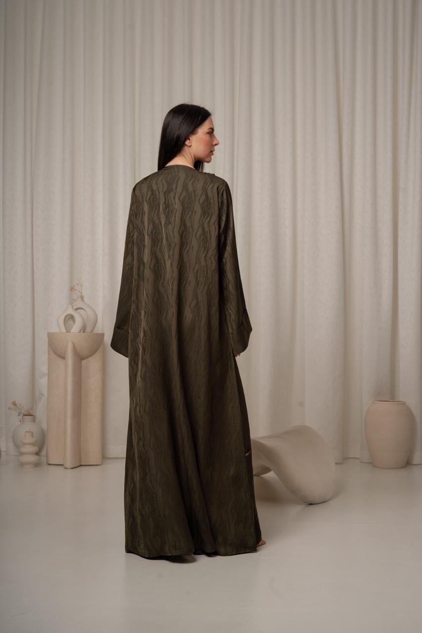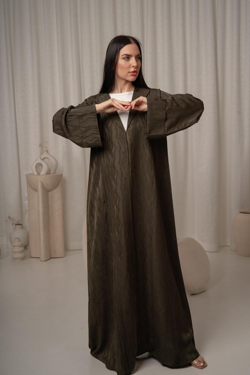 عباية أنيقة باللون الزيتي، مصممة لتكون مثالية لمناسبات الدوام. قماشها ناعم بخامة مموجة تضيف لمسة من الرقي دون مبالغة، مما يجعلها مناسبة لبيئة العمل. تأتي بقصة بسيطة من عند الصدر تضفي عليها لمسة رسمية وأنيقة. الأكمام طويلة وعملية، مصممة لتوفير الراحة طوال اليوم. تفاصيل العباية ناعمة وغير متكلفة، لتمنحك مظهرًا أنيقًا واحترافيًا في الوقت نفسه. هذه العباية خيار رائع لكل سيدة تبحث عن إطلالة عملية وجذابة.